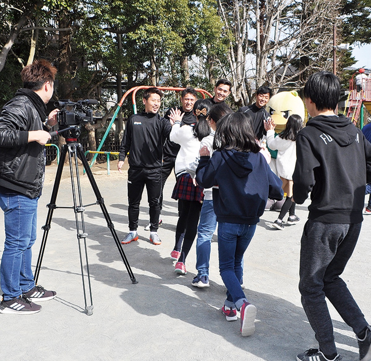 富士見小学校の児童が主体となり、地元サッカーチームのSC相模原を広く周知するためのPR動画の撮影が19日、同小で行われた。