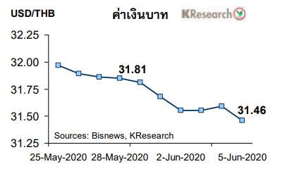สำหรับสัปดาห์ถัดไป (8-12 มิ.ย.) ธนาคารกสิกรไทยประเมินกรอบการเคลื่อนไหวของเงินบาทที่ 31.30-31.70 บาทต่อดอลลาร์ฯ โดยปัจจัยสำคัญที่ต้องติดตาม ได้แก่ ผลการประชุมนโยบายการเงิน ตัวเลขประมาณการเศรษฐกิจสหรัฐฯ รวมถึง dot plots ชุดใหม่ของธนาคารกลางสหรัฐฯ ขณะที่ตัวเลขเศรษฐกิจสหรัฐฯ ที่สำคัญในระหว่างสัปดาห์ ได้แก่ ดัชนีราคาผู้บริโภค ดัชนีราคาผู้ผลิต ดัชนีราคาสินค้านำเข้า/ส่งออกเดือนพ.ค. ดัชนีความเชื่อมั่นผู้บริโภค (เบื้องต้น) เดือนมิ.ย. และจำนวนผู้ขอรับสวัสดิการว่างงานรายสัปดาห์ นอกจากนี้ตลาดอาจรอติดตามสถานการณ์โควิด-19 ทั่วโลก ท่าทีระหว่างสหรัฐฯ-จีน และข้อมูลเศรษฐกิจเดือนพ.ค. ของจีน อาทิ ดัชนีราคาผู้บริโภค ดัชนีราคาผู้ผลิต และยอดค้าปลีกด้วยเช่นกัน