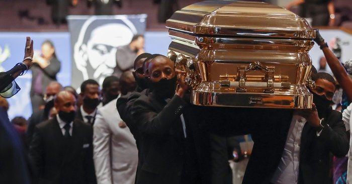 สมาชิกครอบครัวและเพื่อนฝูงของ จอร์จ ฟลอยด์ เข้าร่วมพิธีศพของชายชาวอเมริกันผิวสีผู้ซึ่งเสียชีวิตในระหว่างถูกเจ้าหน้าที่ตำรวจในเมืองมินนีแอโปลิสควบคุมตัวเมื่อ 2 สัปดาห์ก่อน ที่กลายมาเป็นจุดกำเนิดของการชุมนุมประท้วงทั่วสหรัฐฯ และทั่วโลก เพื่อต่อต้านการเหยียดเชื้อชาติและการใช้ความรุนแรงโดยตำรวจ