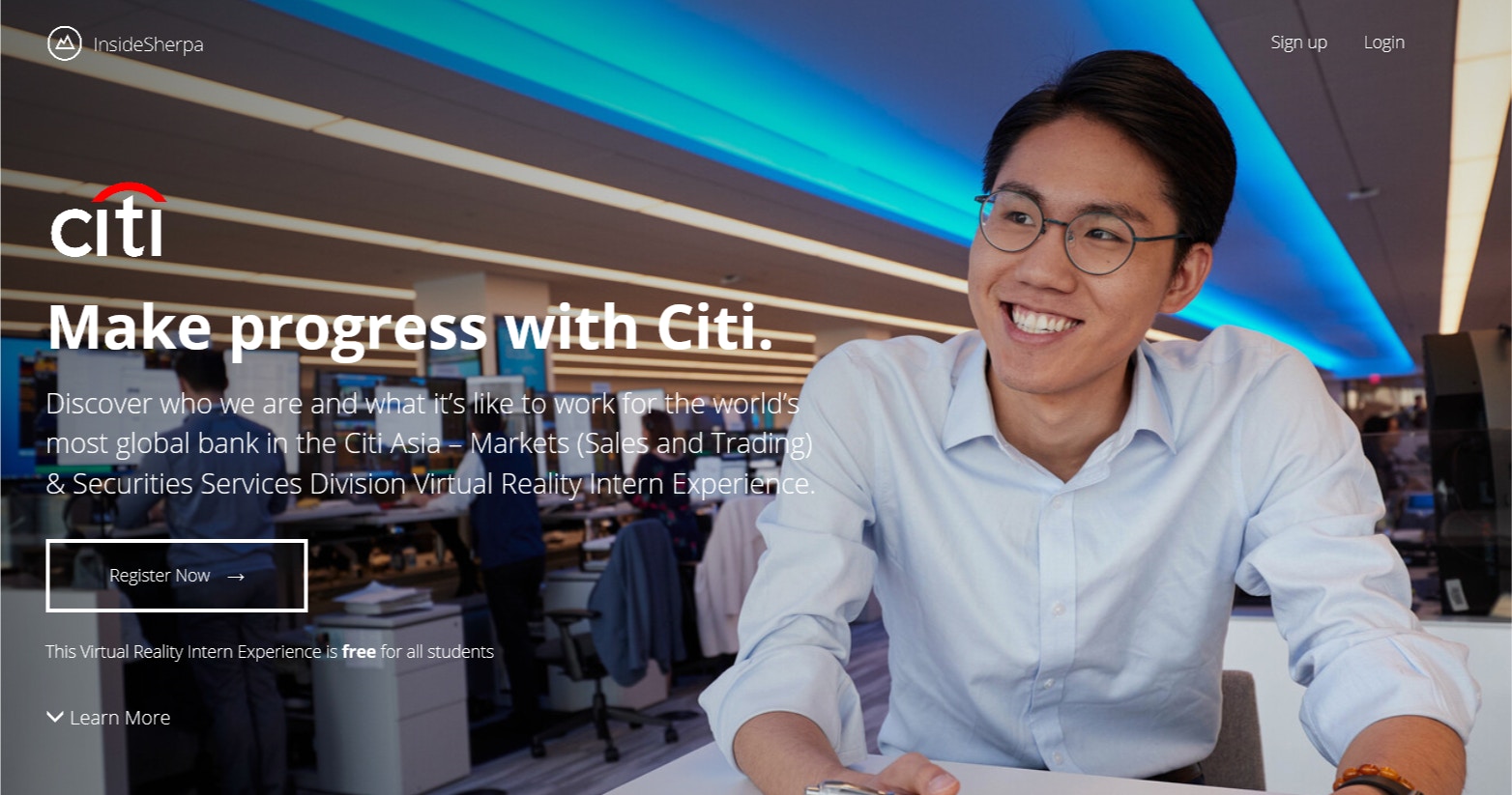 花旗的校園招聘團隊會在每年的第3及第4季到各地的大學進行路演。花旗指,由於新冠肺炎,各地實施出入境限制,今次網上體驗計劃可更廣泛讓世界各地大學生認識集團。而今次虛擬計劃旨在讓大學生親身體驗銀行實習生的生涯,協助他們建立工作技能和自信,有利他們將來加入集團開展事業。
