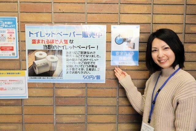 ポスターを作った企画・広報課の関可菜さん(36)によると、盗難が最も深刻だったのは新型コロナウイルス禍でトイレットペーパーが品薄になった頃。「盗むのは犯罪です」「警察に通報します」という趣旨の張り紙をしたが、被害は一向に減らなかったという。